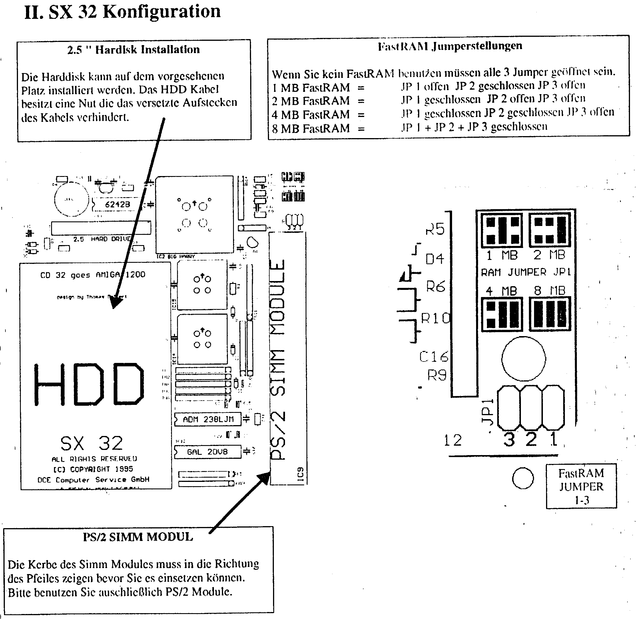 Durch Verwendung von Fast Ram beschleunigen Sie Ihr CD32 um den Faktor 2,3. Wenn Sie eigene Kabel anfertigen wollen können Sie