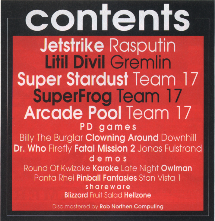 die mit Demos kommerzieller Spiele und allerlei Krimskrams (bei letzterem machte sich die Amiga Kompatibilität bezahlt) vollgestopft war. In späteren Ausgaben ging man zwar