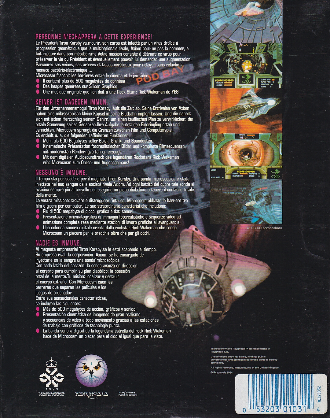 DAS Vorzeigespiel fürs CD32. Wo soll ich beginnen ? Die Grafik - gerenderte Sprites und Hintergründe, der Sound - erstklassig, die Spielidee - ein Hammer ! Ihr werdet mit einem Mini U - Boot in die Venen eines Geschäftsmannes injiziert um einen ebenfalls eingepflanzten Virus aufzustöbern und zu vernichten. Auf dem Weg kommen euch Bakterien, Viren und auch Roboter in den Weg.