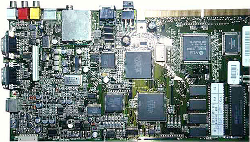 Die Platine des CD³²: dichtgepackte VLSI-ICs auf 6-Layer-Technik (d.h. die Kupferleiterbahnen sind in 6 Schichten übereinander. So erreicht man eine höhere Bauteildichte).